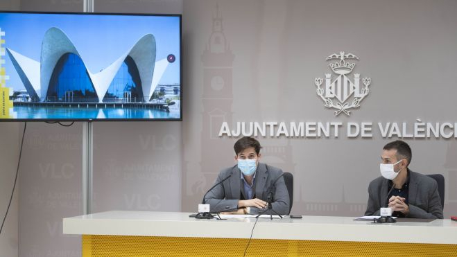 El concejal delegado de Hacienda, Borja Sanjuán, junto al vicealcalde de València, Sergi Campillo