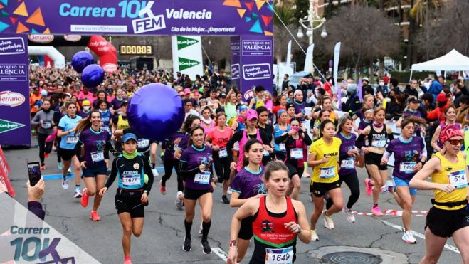 La carrera, impulsada por el club Nosotras Deportistas con la colaboración del Ayuntamiento, transcurrirá por el siguiente itinerario, lo que provocará más calles cortadas. La 10K Femenina discurrirá por el paseo de la Albereda, plaza Saragossa, avenida de Aragó (en dirección contraria al sentido del tránsito rodado motorizado), plaza Cardenal Vicente Enrique y Tarancón para volver por la otra banda de la avenida de Aragó. Continuará por la avenida del Puerto, la calle Pare Tomàs de Montañana, la avenida Balears, la rotonda con Eduard Boscà, la Albereda, la avenida Francia, y la plaza Europa para volver por el otro sentido de la Albereda (todo en dirección contraria al tránsito rodado motorizado) y coger el puente del Regne y las calles Alcalde Reig y Jacinto Benavente, la plaza América, la calle Navarro Reverter (en dirección contraria), la Porta del Mar, las calles Colón, Xàtiva, la plaza del Ajuntament, y las calles Barques, de Pintor Sorolla, del Palau de Justicia, del Justicia, y de la Ciutadella en dirección contraria hacia el puente del Real y meta.