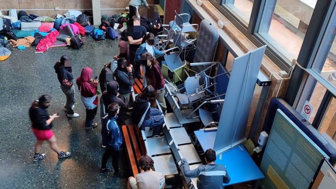 Así, la okupación se ha iniciado a lo largo de esta madrugada, momento en el que los participantes en la protesta pro-Palestina han empezado a bloquear las entradas a la facultad empleando sillas, mesas y todo tipo de mobiliario para impedir la entrada de la seguridad privada, el estudiantado y el personal docente y trabajador de esta.