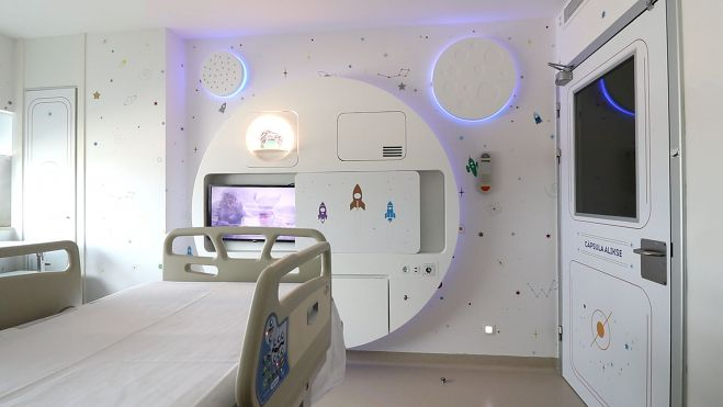 El Hospital Universitari i Politècnic La Fe de València ha estrenado una nueva ambientación para las estancias de aislamiento ubicadas en el área de Trasplante Hematopoyético de la Unidad de Oncohematología Pediátrica. El proyecto, denominado 'La Estación Lunar', forma parte de una iniciativa de la Fundación Juegaterapia para humanizar los espacios hospitalarios.