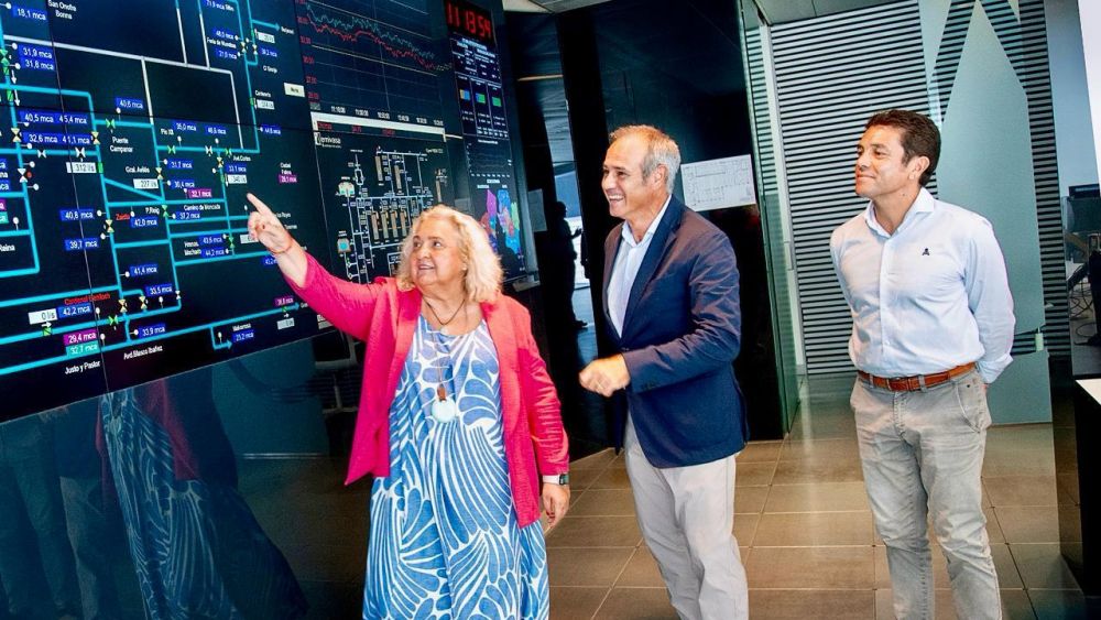La alcaldesa en funciones y presidenta de Emivasa, María José Ferrer San Segundo, junto al concejal del Ciclo Integral del Agua, Carlos Mundina, visitó el centro de operaciones en Vara de Quart, donde conocieron de primera mano no solo el balance de consumo, sino también las últimas novedades tecnológicas en la gestión del agua.
