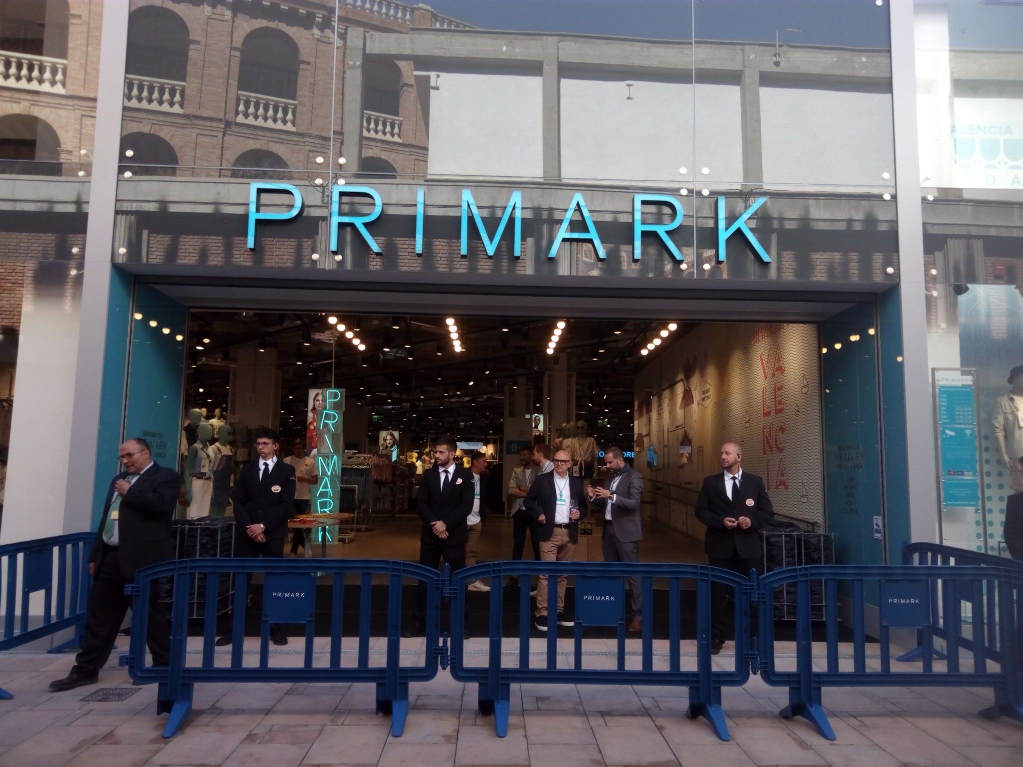 Durante los primeros días también se ha contratado a varias agencias de azafatas y azafatos para atender a los clientes, que han acudido al Passatge Doctor Serra desde las 8 de la mañana. En las dos colas para entrar, se mostraban expectantes y muchos coinciden en les gusta más su ubicación que la del Centro Comercial Bonaire (Aldaia), por estar en el centro y disponer de transporte público. Para hacer más llevadera la espera y combatir el calor, Primark ha repartido horchata y fartones y ha invitado a la artista local Belén Segarra para pintar un mural frente a una de sus puertas.