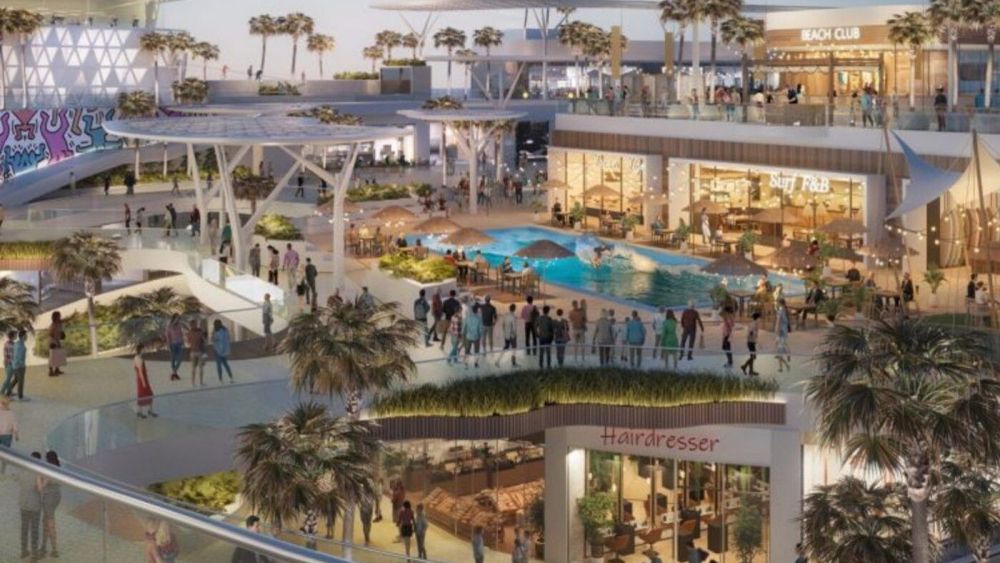 El conjunto reserva una extensa zona para restauración y propuestas de entretenimiento, así como alrededor de 20.000 metros cuadrados destinados a un futuro hotel. Entre los elementos más singulares destaca la piscina de olas, presente en la propuesta inicial y todavía sujeta a validación: solo se construirá si se garantiza su uso y viabilidad durante todo el año.
