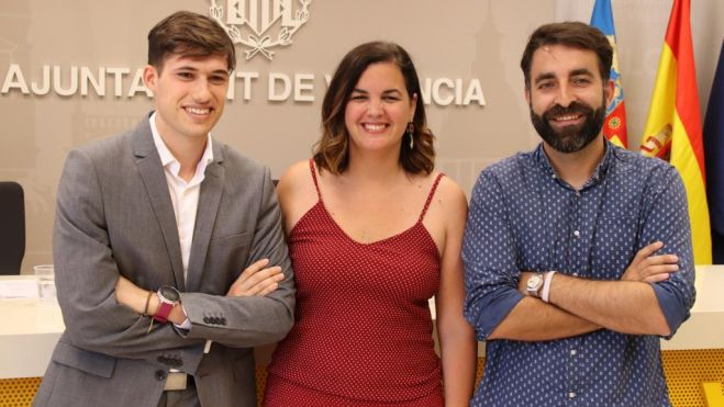 Los concejales del Ayuntamiento de València Javier Mateo, Sandra Gómez y Borja Sanjuán