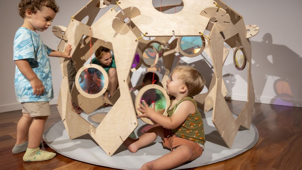 Una media de 800 personas a la semana están disfrutando este verano de este taller confeccionado a partir de la colección de piezas, diseñadas por Sara San Gregorio y producidas por Alicia Gutiérrez para el IVAM. Estas piezas animan a las niñas y niños a explorar con luz, reflejos, volumen, texturas o construcciones.