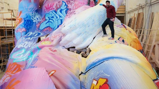 En concreto, está previsto que los asistentes pinten cualquiera de los quince cubos que forman la base del monumento fallero, que representan el proceso creativo y la evolución de un bloque de mármol que se esculpe hasta conseguir una figura definida. Así, “Procés creatiu” combina esculturas griegas y clásicas con el mundo del grafiti y recreará en directo las fases de un mural creativo en 3D, por lo que València se trasladará hasta Grecia a través de cada parte de la Falla que se pinte este sábado.