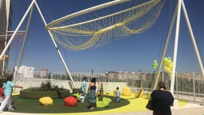 La Fundación Juegaterapia, que ayuda a los niños enfermos de cáncer a través del juego, ha inaugurado su tercer ‘Jardín de mi Hospi’ en la azotea del Hospital La Fe de Valencia. Un espacio de 1.200 metros cuadrados lleno de color, zonas de juego y de descanso, que permitirá a todos los menores ingresados olvidarse, durante un rato, de sus largos tratamientos, y que vuelvan a disfrutar de su infancia.