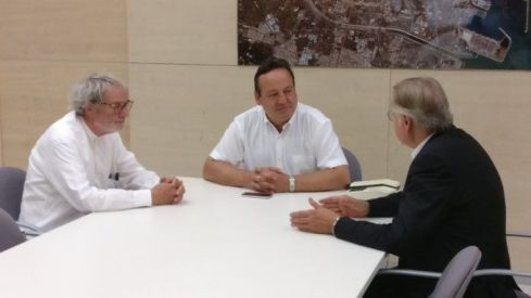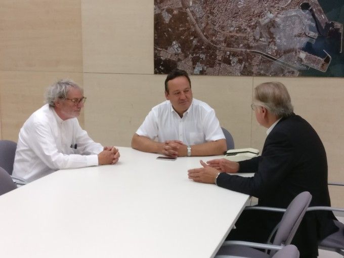 El concejal de Desarrollo Urbano y responsable del Ciclo Integral del Agua, Vicent Sarriá, se ha reunido hoy con el decano del Colegio Oficial de Ingeniero Industriales y el escultor Miquel Navarro en un encuentro dirigido a adoptar las acciones oportunas para devolver a la fuente conocida popularmente como “la Pantera Rosa”, su aspecto original, así como mejorar su iluminación.