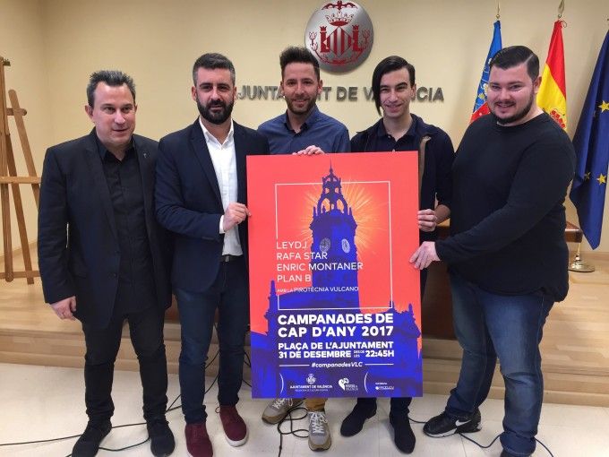 El Ayuntamiento ha presentado la fiesta de Nochevieja que dará la bienvenida al año 2018 en la Plaza del Ayuntamiento. Un espectáculo que contará con cuatro DJs valencianos y que aspira a congregar a más de 50.000 personas esa noche. Su importe final ascenderá a 43.800 euros.