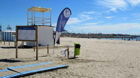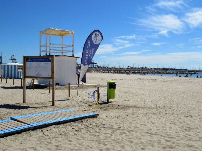 El Ayuntamiento ya ha organizado todos los servicios de la playa can de Pinedo que este año cuenta, como novedad, con balizamiento en el mar, una cordada de boyarines que delimitará el espacio en el que los perros pueden bañarse.