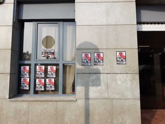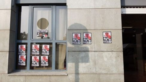 La sede del PSPV llena de pegatinas contra la exhumación de Franco