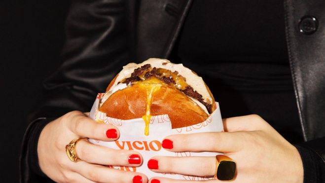 Así, este no será un restaurante al uso, ya que será un establecimiento de delivery y take away en el que se podrán comprar los productos de Vicio para llevar y también se realizarán pedidos a domicilio. En la carta de Vicio, aparecen creaciones como la clásica burger Pollos Hermanos, la cheeseburger o la cheeseburger con trufa. También incluyen opciones veganas elaboradas a partir de beyond meat, complementos como patatas fritas o alitas cocinadas a baja temperatura, postres dulces y batidos.