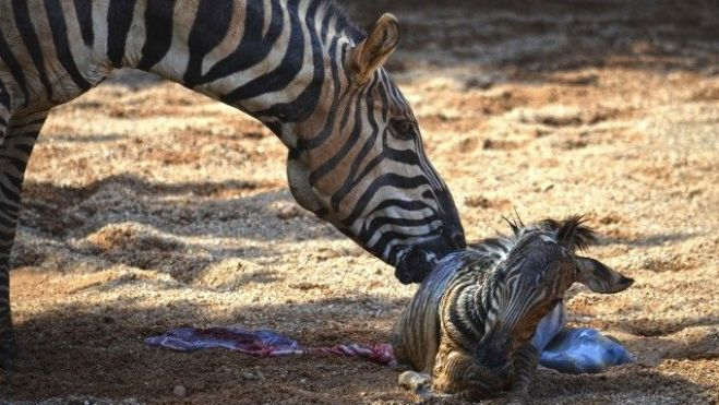 La Niña, una de las cebras que habita en la zona de la sabana de Bioparc, se puso de parto sobre las 14.45 horas de este miércoles y el parque activó el protocolo del departamento técnico que, en estos casos, supone observar y confirmar que la vida se abra camino de la forma más natural.