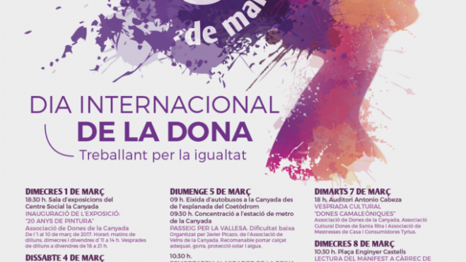 2-8 de marzo. Benimàmet-Beniferri. Exposición de Carteles.5 de marzo. Casas de Bàrcena. Misa (12:30), comida (14:00) y juegos en Alcaldía5 de marzo. Benimàmet-Beniferri. L’Espai Obert. Presentación libro “Un maravilloso mundo de mierda”, de María Vigo Ibàñez (19:00)6 de marzo. Forn d’Alcedo. Plaza Riu Segura. Concierto de Jazz. (17:00-21:00)6 de marzo. Benimàmet-Beniferri. L’Espai Obert. Presentación libro “PEDRO ZEROLO”, de Jordi Ortiz Gisbert (19:00)7 de marzo. Benifaraig. Edificio Municipal El Casino. Actuación musical cuarteto de instrumentos organizado por la comisión de Igualdad de la SociedadMusical Amigos de la Música de Benifaraig con piano, mesa redonda de debate y reflexión (18:00)7 de marzo. Castellar-El Oliveral. Teatro l'Horta. Espectáculo “De Categoría Internacional” (18:00)7 de marzo. Carpesa. Salón multiusos Alcaldía. “Cuentos en femenino plural”. Actuación representando una selección de cuentos en los que las protagonistas son las mujeres (18:30). Al acabar se celebrará una cena de ‘pa i porta’ para todos los que quieran participar8 de marzo. El Saler. CEIP Lluís de Santàngel. Actuación Unión Musical El Saler del colegio Lluís de Santàngel (12:30)