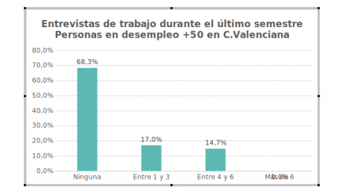Tal y como se recoge en este informe, del total de personas senior en desempleo, el 68,3% de las encuestadas en la Comunitat Valenciana no ha recibido respuesta de ninguna oferta a la que ha aplicado en el último semestre (por tanto no ha realizado entrevistas de trabajo) y 9 de cada 10 opina que la razón subyacente es la edad, ya que a partir de los 50 años los currículos “no superan el filtro”.