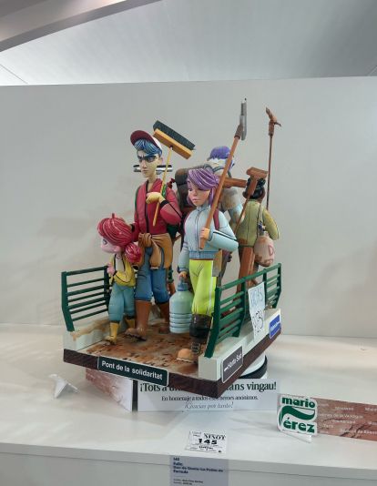 Por su parte, la Falla Duque de Gaeta – Pobla de Farnals se ha llevado el Ninot Indultat Infantil de las Fallas 2025 del artista Mario Pérez. En este caso, se trata de una escena que rinde homenaje a los voluntarios que colaboraron en la reconstrucción de la zona cero de la DANA, representando el conocido como puente de la solidaridad.