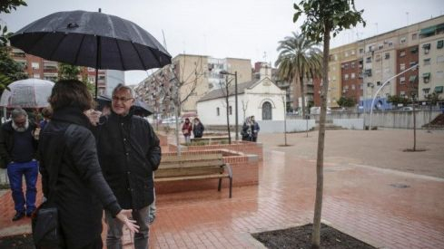 “Este parque de la ermita de Orriols que hoy se pone en funcionamiento, a pesar de la lluvia, es fruto de la participación de la gente del barrio, y se ha hecho a partir de un debate amplio entre los responsables del proyecto y las asociaciones de vecinos, teniendo muy en cuenta la historia de Orriols. Por eso el jardín refleja la huella de las antiguas casas que estaban ahí y también el lugar donde estaba la antigua ermita”, ha señalado Joan Ribó tras recorrer el nuevo parque bajo la lluvia y recibir todo tipo de explicaciones de la arquitecta y paisajista, Elisabet Quintana.