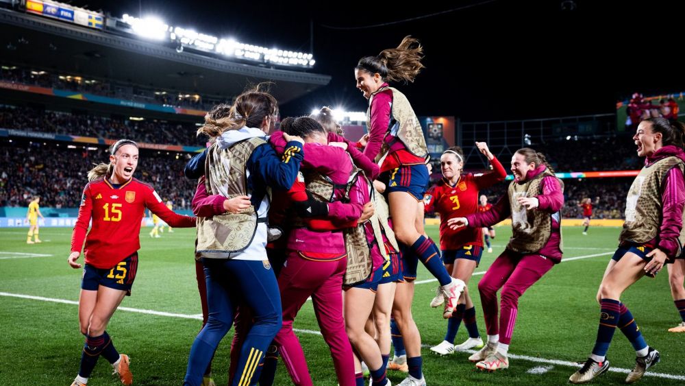 La Selección Española de Fútbol Femenino celebrando su victoria en semifinales del mundial ante Suecia (2-1)