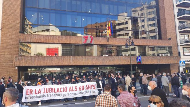 Profesionales del sector del transporte se han concentrado este jueves en València para exigir el adelanto de la edad de jubilación a los 60 años por los mayores "riesgos, morbilidad y accidentalidad" de esta profesión a partir de esa edad.