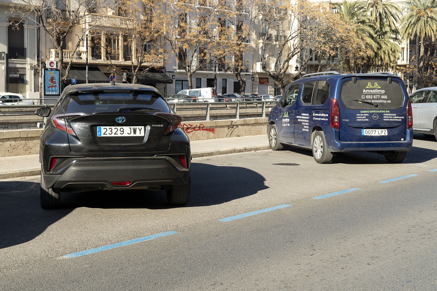 La zona verde será la única que no cambia y continuará siendo exclusiva para el aparcamiento de residentes que hayan solicitado la tarjeta en el Ayuntamiento de València, que les habilita para aparcar en dichas plazas.