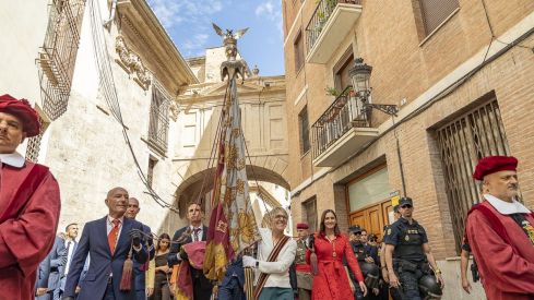 Un transcurso que, como siempre, se ha vivido con algunos momentos de tensión entre el público al paso de los representantes institucionales, aunque sin hechos reseñables. Papi Robles, portavoz de Compromís en el Ayuntamiento de València, ha sido la portadora de la Reial Senyera este año, tomando el relevo de la alcaldesa, María José Catalá, que es precisamente de quien depende esta decisión.