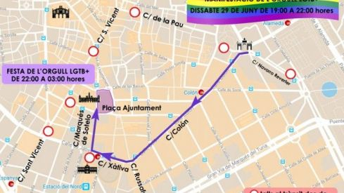 El sábado 29 de junio, de 19.00 a 22.00 horas, está programada la Manifestación del Orgullo LTGB+, que dará comienzo en la Porta de la Mar y finalizará en la plaza del Ayuntamiento, aunque está previsto que la concentración comience en la calle Navarro Reverter a partir de las 18.00 horas.