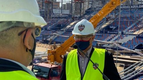 El alcalde Joan Ribó y el presidente de la entidad deportiva, Quico Catalán, han realizado una visita a las obras acompañados por la vicealcaldesa y concejala de Desarrollo Urbano, Sandra Gómez, y por la concejala de Deportes, Pilar Bernabé, y la concejala de Espacio Público, Lucía Beamud, así como parte de la directiva del club. Las obras de reforma del estadio están previstas en dos fases, y actualmente están en ejecución las obras de la Fase I, que consisten en la construcción de una cubierta completa del estadio y nuevas instalaciones de iluminación, señalización, televisión y seguridad. Al término de esta primera fase comenzará la segunda, para la que el Levante UD ya dispone de un anteproyecto detallado. Ésta consiste en la remodelación integral del actual estadio que, pese a su carácter global, garantiza la conservación de su actual estructura y gradas, aunque con modificaciones, y adecuándolo a la normativa vigente sobre accesibilidad y seguridad.