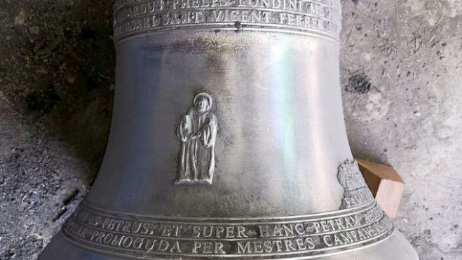 Esta primera campana pesa 117 kilos y ha sido fundida por el maestro fundidor Gabriel Rivera, que tiene su taller en Montehermoso (Cáceres), desde donde será trasladada a Valencia "en las próximas semanas".