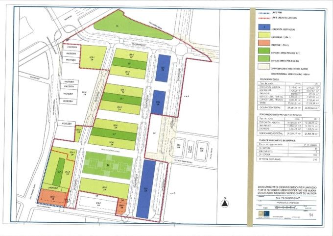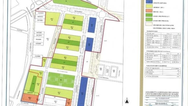 La actuación contempla una edificabilidad de 29.239 m2 techo, que permitirá la construcción de unas 238 nuevas viviendas. La mitad de ellas irán en tres bloques de edificación abierta y dos edificios de nueva planta que taparán medianeras, y el resto serán viviendas unifamiliares con tipología de pueblo y jardín interior.