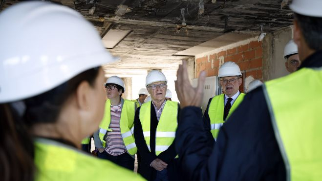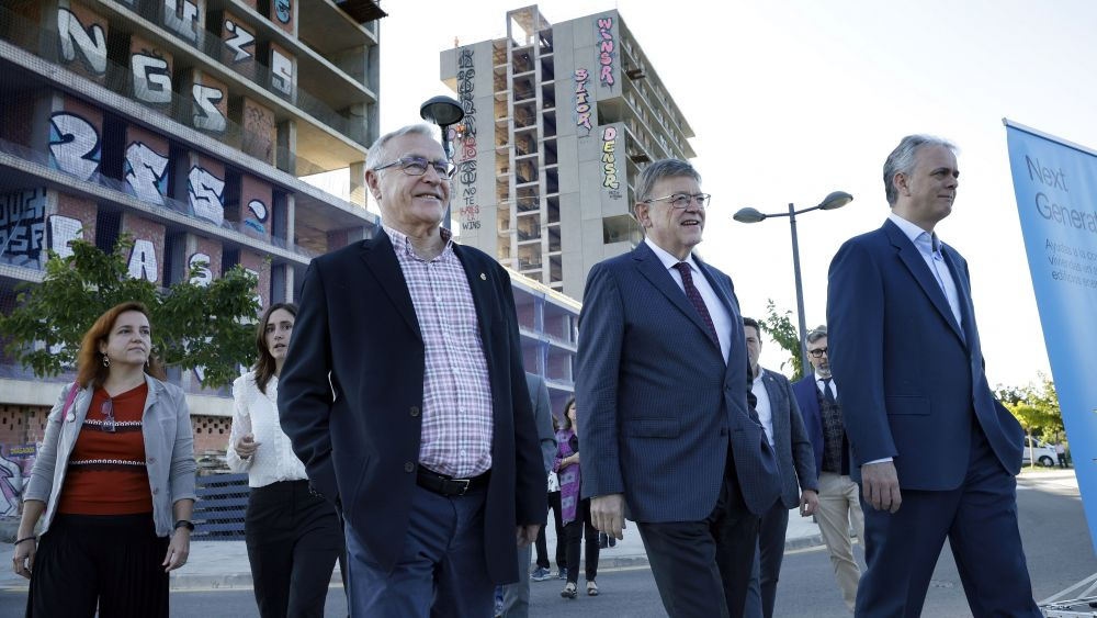 El president de la Generalitat Valenciana, Ximo Puig, ha visitado las obras acompañado del vicepresidente segundo y conseller de Vivienda y Arquitectura Bioclimática, Héctor Illueca, y del alcalde de València, Joan Ribó. Puig ha destacado el esfuerzo realizado para recuperar para el parque público de vivienda un proyecto inacabado “símbolo de un tiempo, de una manera de hacer las cosas que ha costado mucho redirigir”.
