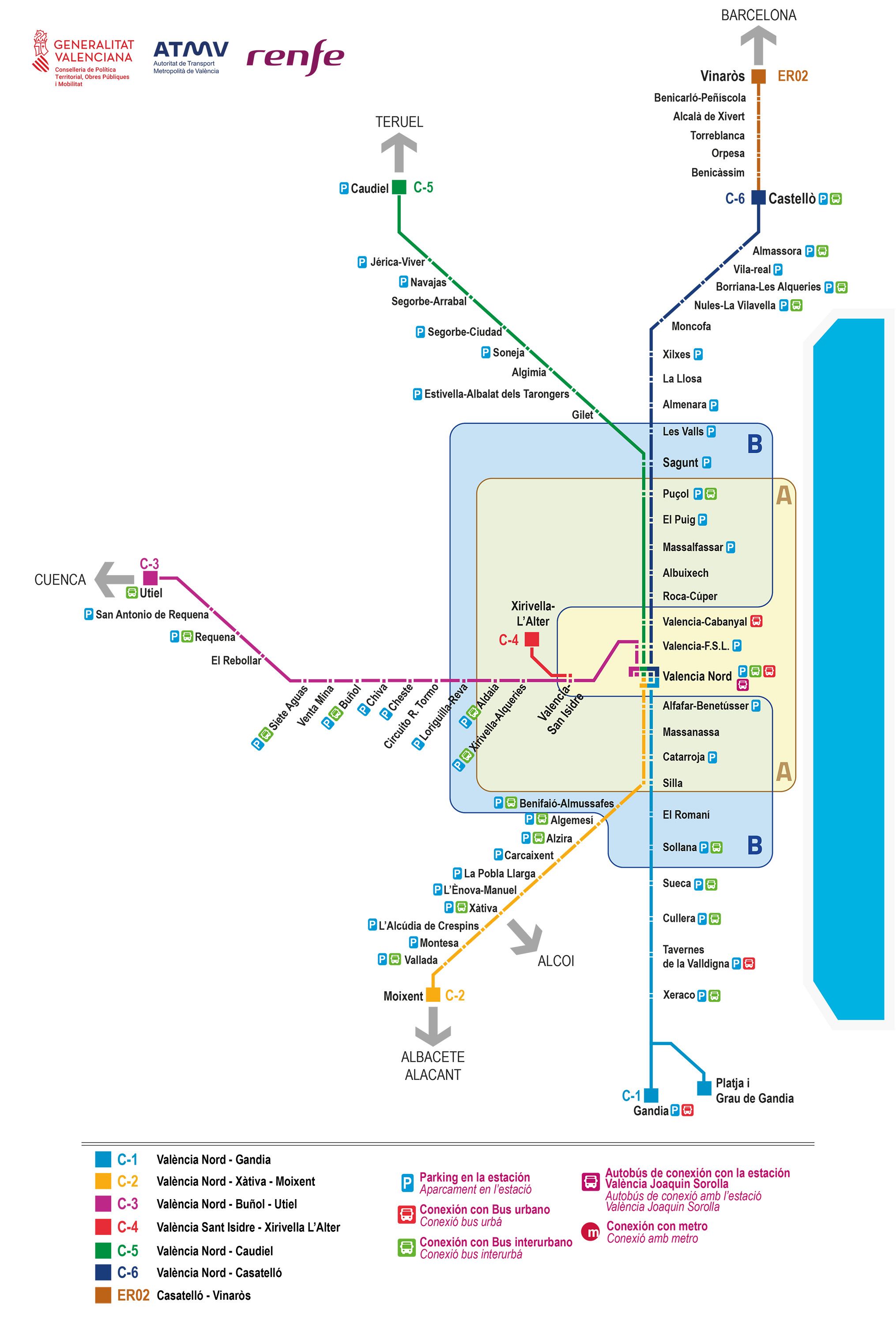 - Finalmente, la zona B – pagarán una o dos zonas dependiendo de su desplazamiento – serán los municipios de Camp del Túria y Camp de Morvedre.
