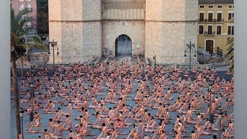 El pasado 30 de marzo, Valencia se desnudaba ante la mirada del fotógrafo Spencer Tunick. Bajo el título «València, pell del Mediterrani», el neoyorquino capturó a centenares de personas desnudas delante de las Torres de Serrano. Hoy ha querido compartir la imagen en sus redes sociales, un espacio desde el que los interesados han podido observar la obra del polémico artista.