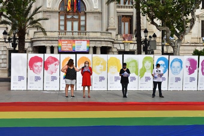Con el consistorio de la ciudad de fondo y un muestrario que daba a conocer la campaña del Orgullo 2020 del mismo colectivo, se han visibilizado trece rostros de mujeres referentes para el colectivo y muchas de ellas, apenas conocidas. Desde creadoras o artistas como Frida Kahlo, Lili Elbe, Carmen de Mairena, Cristina Ortiz "La Veneno" y Gloria Fuertes, hasta pensadoras como Virgina Wolf, Audré Lorde, Monique Witting y Judit Butler, però también activistas LGTB+ como Stormé DeLarverie, Kanako Otsuji y Silvia Rae Rivera, además de una mujer sin rostro que representa Margarida Borrás, la primera mujer trans que fue asesinada por intolerancia a mediados del siglo XV.