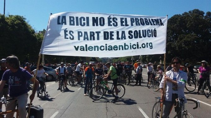 Allí se han podido ver algunas pancartas como 'la bici no és el problema, és part de la solució (la bici no es el problema, es parte de la solución), "concienciación sin contaminación, los carriles bici buena solución" o "el planeta sobrevivirá, nosotros no".