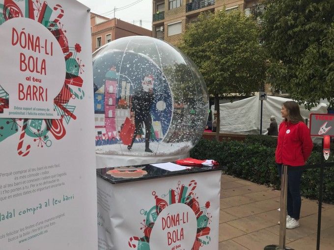 ‘Dóna-li bola al teu barri’ es la campaña que ha lanzado la Concejalía de Comercio para promover y dinamizar el comercio en la campaña de Navidad. Una bola de nieve gigante recorrerá los barrios de la ciudad para que las personas que compran en el comercio de la zona puedan realizarse una fotografía dentro de la bola con la presentación del ticket de compra.