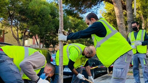 El Servicio de Jardinería Sostenible ha empezado la plantación de 70 ejemplares arbóreos en varios barrios de València. En el marco de esta intervención también se han adaptado algunas aceras para salvar pinos que pueblan desde hace 40 años la calle de Vall de la Ballestera, en el barrio Campanar, una actuación en que «por primera vez las aceras se adaptan a los árboles y no al revés», como ha explicado el vicealcalde y concejal de Ecología Urbana, Sergi Campillo.