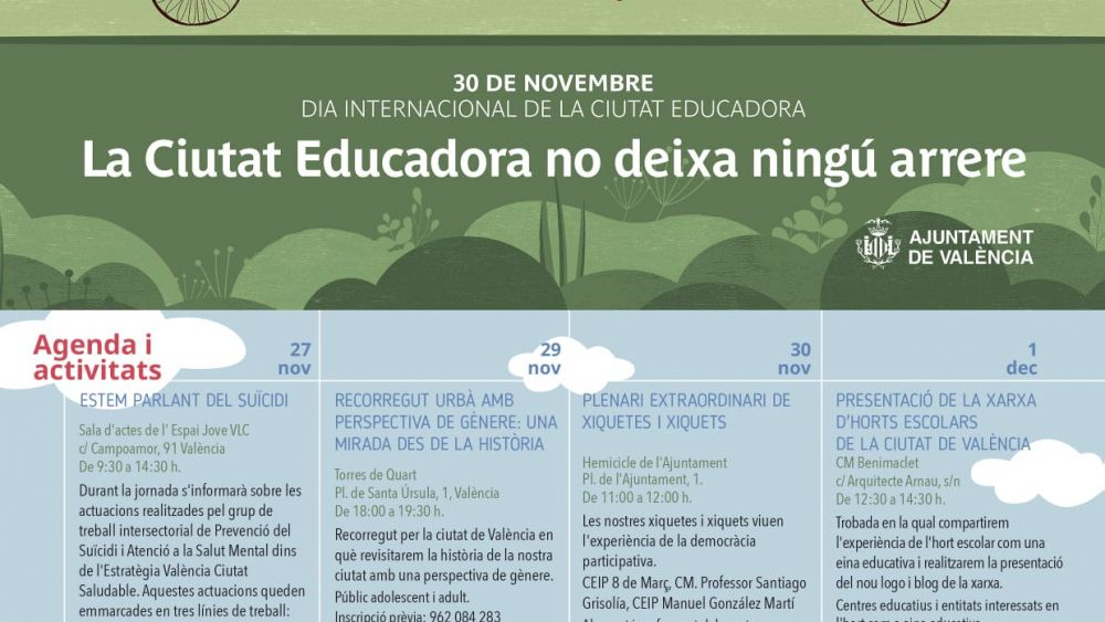 Se puede consultar toda la programación en el siguiente enlace:  https://educacio-valencia.es/dia-internacional-de-la-ciutat-educadora-2021/