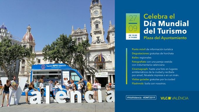 La plaza del Ayuntamiento será, el próximo 27 de septiembre, el epicentro de la celebración de una jornada dedicada a poner en valor la actividad turística como herramienta para el desarrollo social y económico, así como a dar visibilidad a nuestro patrimonio y nuestra cultura. De esta manera, con una agenda de actividades culturales gratuitas para residentes y para turistas, València se suma a la celebración del Dia Mundial del Turismo.