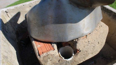 Por otra parte, el pedestal de la escultura, a pesar de tener una consistencia estructural buena, presenta roturas de diferentes dimensiones, localizadas principalmente en los vértices y hay reamasillamientos y reconstrucciones con materiales inadecuados. Toda su superficie presenta un desgaste regular producido por los agentes externos físicos de deterioro (temperatura, humedad, viento, luz y lluvia). El interior de la obra presenta suciedad depositada de naturaleza mineral y orgánica, restos de obra, productos de corrosión y ataques biológicos (uno o varios avisperos).