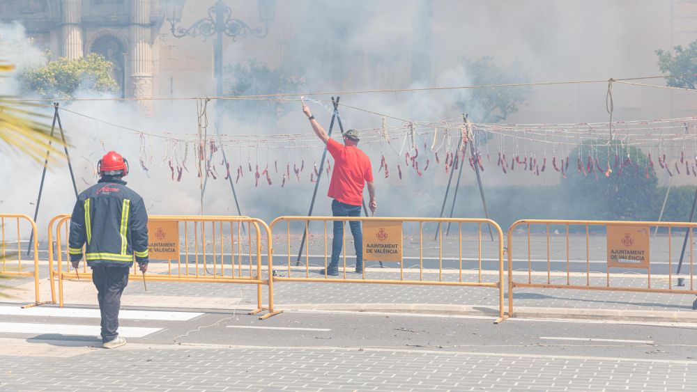 València disparará más de 7 toneladas de pólvora estas Fallas en la plaza de L’Ajuntament, en los castillos que se celebran en el Pont de Montolivet y en varios espectáculos pirotécnicos. En total, el Ayuntamiento disparará 19 mascletades en la plaza de L’Ajuntament, 8 espectáculos nocturnos, L’Alba de les Falles, 2 castillos de fuegos artificiales, 1 cierre de la Cavalcada del Foc, la Nit del Foc y la Nit de la Cremà. Son, en total, 7.002,18 kilos de material pirotécnico reglamentado, de los que 3.465,11 se dispararán en las mascletades del mediodía en la plaza de L’Ajuntament.