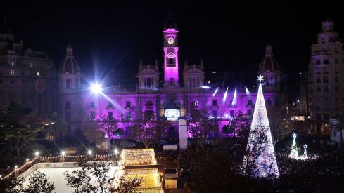 Iluminación de Navidad en la plaza del Ayuntamiento de València