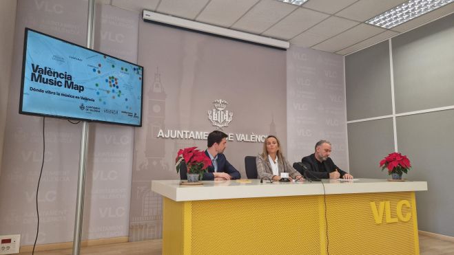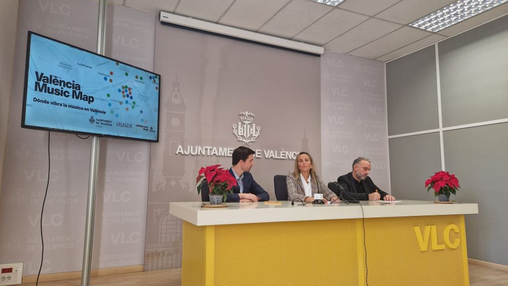El Ayuntamiento de Valencia ha presentado la nueva plataforma digital Valencia Music Map, una herramienta de promoción de los espacios musicales de la ciudad, que permite geolocalizar los principales puntos calientes de la música en vivo y los establecimientos musicales de la ciudad. La concejala delegada de Turismo, Innovación e Inversiones y presidenta de Visit Valencia, Paula Llobet, ha presentado esta mañana la plataforma, acompañada de Vicent Molins, de la agencia District, y Armad Llàcer, de Valencia Music Ofice, que han colaborado en la realización de la herramienta.