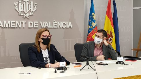 La concejala de Desarrollo Económico, Pilar Bernabé, que ha comparecido acompañada del vicealcalde y portavoz municipal, Sergi Campillo