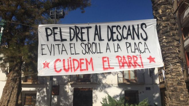 Desde las 09.00 horas y hasta pasado el mediodía, los vecinos se han congregado en la plaza de Benimaclet, brochas y rotuladores en mano, para vestir la plaza y un descampado cercano a la Murta con mensajes en los que reivindican su "derecho al descanso" y piden "evitar el ruido en la plaza".