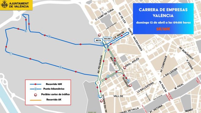 València se prepara para acoger la XIII Carrera de Empresas València 2026 este próximo domingo, 12 de abril. Este evento deportivo, que se desarrollará en el distrito de Campanar, implicará una serie de modificaciones en el tráfico y el transporte público que los ciudadanos deberán tener en cuenta para planificar sus desplazamientos. La carrera, que tendrá lugar entre las 9:00 y las 10:40 horas, afectará a varias de las principales arterias del barrio, generando cortes y desvíos necesarios para garantizar la seguridad de los participantes y el buen desarrollo de la competición.