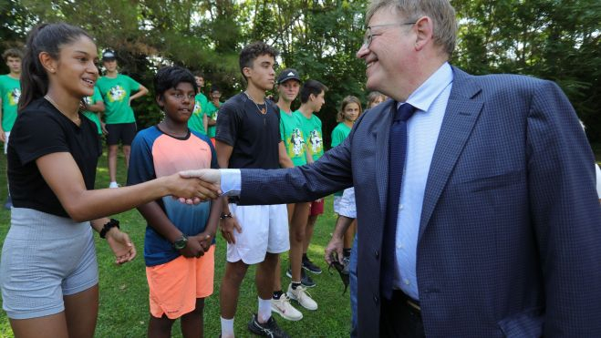 El president ha visitado las instalaciones del centro deportivo de alto rendimiento Equelite - Juan Carlos Ferrero Sport Academy, donde ha recorrido las diferentes pistas acompañado del alcalde de Villena, Fulgencio Cerdán; el presidente de la Federación de Tenis de la Comunitat Valenciana, Antonio Martínez, y el miembro de la dirección del centro Carlos Escribano.
