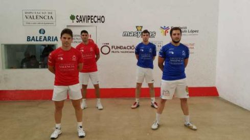 El dissabte, en el trinquet de la Llosa de Ranes, van debutar els altres dos equips del grup B. La parella de Montaner i Sanchis (Ajuntament de Montesa) van superar per un ajustat 25 per 20 a la formació de Marrahí i Josep (Vilanova de Castelló). L'inici del duel va estar marcat pel bon fer de el ‘mitger’ de Montesa i per el ‘traure’ i la seguretat de Montaner, que els va permetre situar el 15 per 5 en un primer moment, i el posterior 20 per 10.