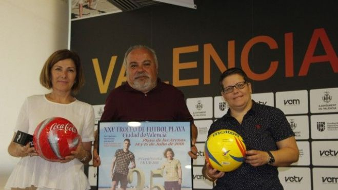 La regidora d'Esports, Maite Girau, ha participat aquest matí en la presentació del XXV Trofeu Ciutat de València de Futbol Platja, que tindrà lloc els dies 14 i 15 de juliol a la platja del Cabanyal. A més de la competició de futbol platja amateur de primer nivell i la Copa Falles, enguany es jugarà el primer partit mixt de totes les edicions.