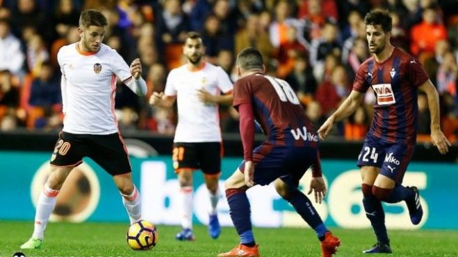 Però va despertar d'una mala manera: en l'últim minut del primer temps, després d'un xoc entre Soler i Escalante en l'àrea gran en un córner, l'àrbitre va expulsar al migcampista valencianista i va cobrar penal per l'Eibar. Una jugada confusa que va portar a la ment els records més foscos d'esta temporada i el 0-2 en els peus d'Adrián.