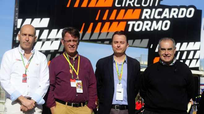 El director general del Circuit Ricardo Tormo, Gonzalo Gobert, el vicepresident de CIRJESA societat gestora del Circuit de Jerez, Santiago Galbán i el director del Circuit de Jerez, Cornelio Vetla han signat l'acord de col·laboració per a l'engegada d'una entrada conjunta per a assistir al Gran Premi d'Espanya i al Gran Premi de la Comunitat Valenciana de la temporada 2017.